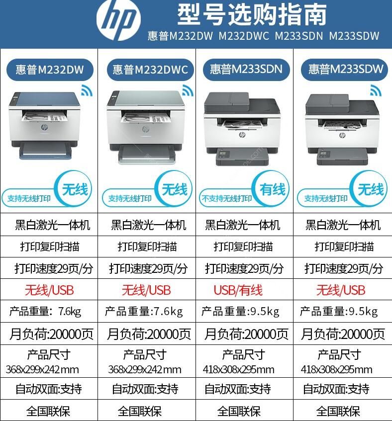 惠普(HP) M233DW A4黑白激光復印掃描辦公 自動雙面無線打印機